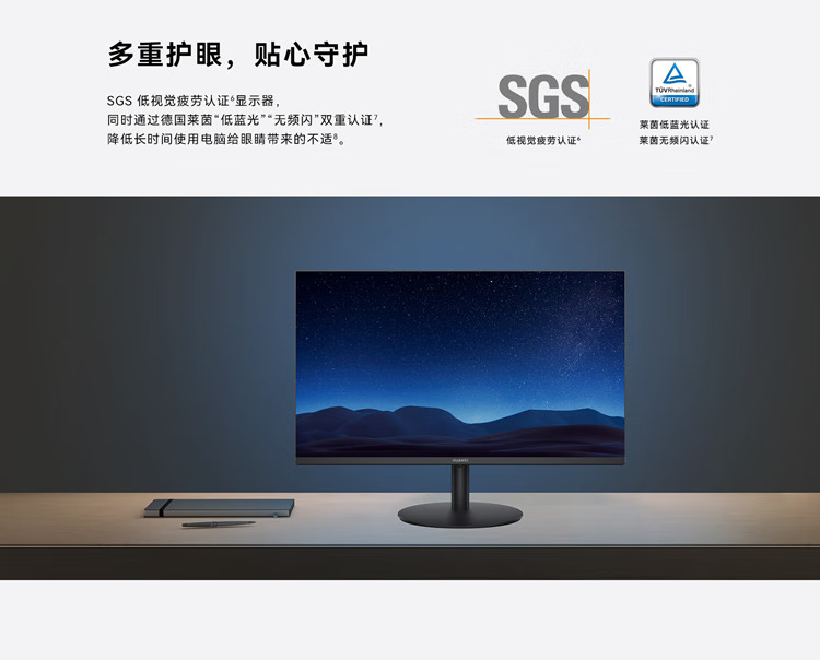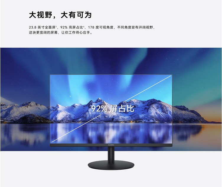 華為HUAWEI商用顯示器B3-241H 23.8英寸顯示器IPS全高清1920*1080全面屏電子書模式五向搖桿便捷操作 DP+HDMI